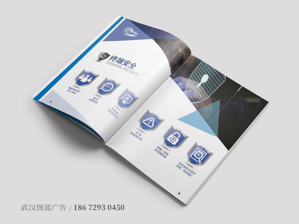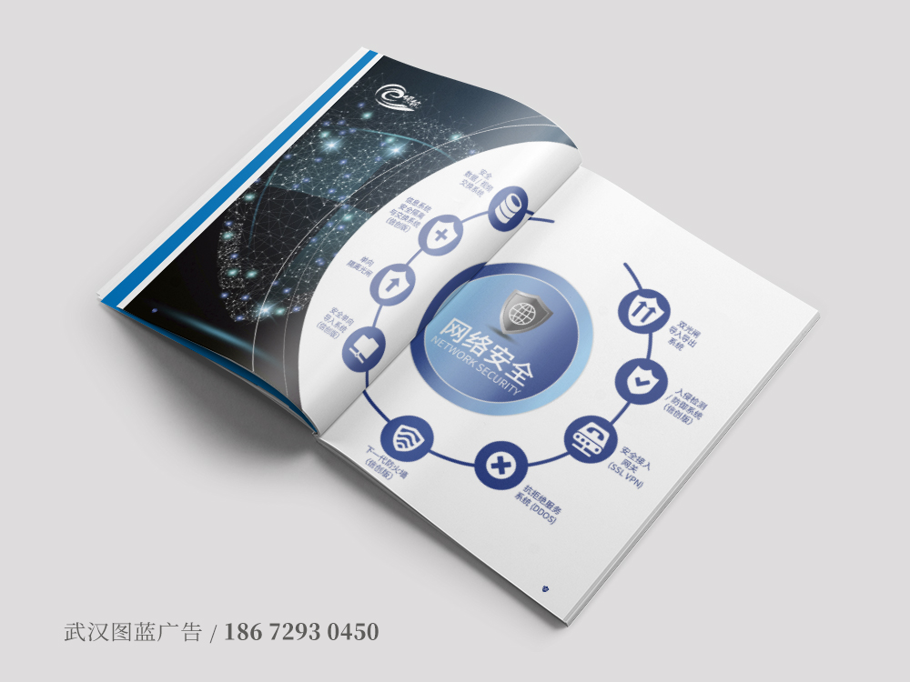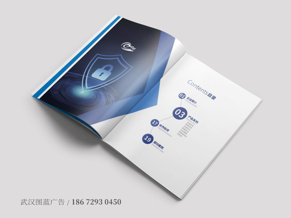 圖藍(lán)設計(jì)根據行(xíng)業(yè)屬性分(fēn)析,決定還(hái)是(shì)采用(yòng)藍(lán)色作(zuò)為(w èi)主色調,藍(lán)色代表科(kē)技(jì)和(hé)不(bù)斷探索的(de)魅力,封面運用(yòng)企業(yè)logo的(de)兩個(gè)配色做(zuò)色塊,交✘彙處嵌入富有(yǒu)科(kē)技(jì)感的(de)網絡安全圖片,象征著(zhe)武漢天翼領航科(kē)技(jì)公司從(cóng)事(shì)網絡安全的(de)行(xín©g)業(yè)特性,這(zhè)樣拿(ná)到(dào)宣傳冊就(jiù)能(néng)馬上(shàng)聯想到(dàoφ)這(zhè)家(jiā)公司是(shì)做(zuò)什(shén)麽的(de),行(xíng)業(yè)特性顯而易見(jiàn)。內(nèi)頁設計(αjì)邏輯清晰,從(cóng)公司簡介、經營項目、合作(zuò)夥伴以及解決方案幾大(dà)塊分(fēn)開(kāi)介紹,全面展示了(le)企業(yè)的(de)發展以及綜合實力÷。後期制(zhì)作(zuò)上(shàng),整本畫(huà)冊采用(yòng)的(de)是(shì)特種紙(zhǐ)印刷,封面選用(yòng)自(zì)帶紋路(lù)的(de)特種紙(zhεǐ),logo激凸加UV,一(yī)本精美(měi)的(de)畫(huà)冊呈現(xiàn)了(le),完全做(zuò)到(dào)了(le)引人(rén)入勝的(¥de)效果。