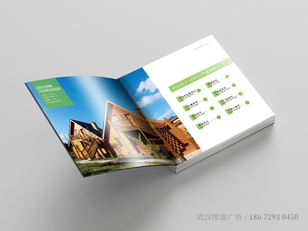 萬衆木(mù)屋是(shì)一(yī)本單純的(de)産品畫(huà)冊,突出案例展示。為(wèi)了(le)讓宣傳畫(huà)$冊不(bù)枯燥,在內(nèi)頁的(de)文(wén)案上(shàng),我們圖藍(lán)設計(jì)師(shī)花(huā)費(fèi)了(le)一(yī)些(xiē)心思,因産品↑是(shì)木(mù)結構别墅,本身(shēn)就(jiù)是(shì)一(yī)道(dào)風(fēng)景,隻需配上(shàng)詩情畫(huà)意的(d$e)文(wén)字,就(jiù)能(néng)讓人(rén)賞心悅目。封面的(de)設計(jì)結合了(le)logo的(de)元素和(hé)色調,也(yě)符合行(xíng×)業(yè)特征,加上(shàng)封面印刷采用(yòng)了(le)壓紋工(gōng)藝,總體(tǐ)效果還(hái)是(shì)很(hěn)不(bù)>錯(cuò)的(de)。