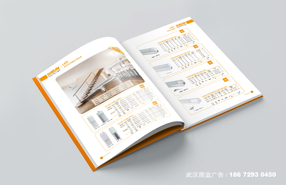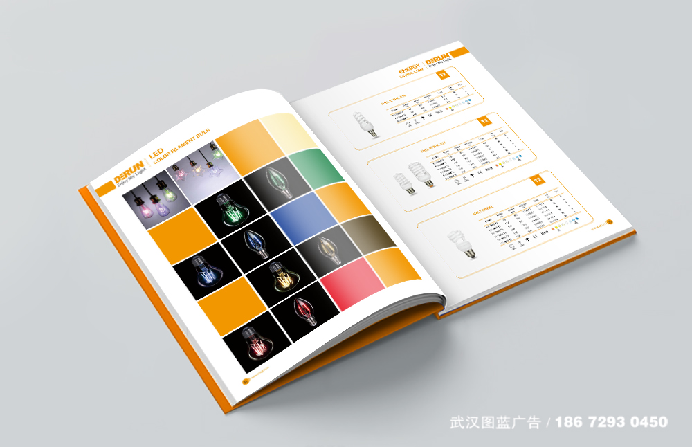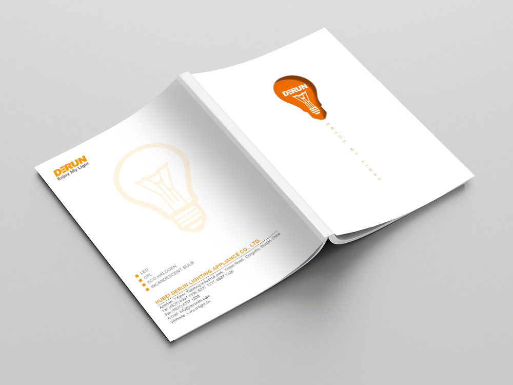 畫(huà)冊內(nèi)容上(shàng),以突顯德潤照(zhào)明(míng)的(de)各類産品為(wèi)主,可(kě)以說(shuō)是(sh≈ì)一(yī)本産品選型手冊,那(nà)麽在排版上(shàng),隻需要(yào)做(zuò)到(dào)産品圖片精修、闆式清晰明(míng)了(lσe)、數(shù)據準确無誤、顔色鮮亮(liàng),就(jiù)是(shì)最具傳播價值、最具實效的(de)畫(huà)冊了(le)。但(dàn)一(yī)本好(hǎo)的(de)畫(♥huà)冊還(hái)是(shì)需要(yào)一(yī)個(gè)突出亮(liàng)點的(de),那(nà)麽,封面就(jiù)是(shì)最好(hδǎo)的(de)施展點。圖藍(lán)設計(jì)還(hái)是(shì)堅持一(yī)貫的(de)簡潔風(fēng)格,封面采用('yòng)純白(bái)色,運用(yòng)公司主營就(jiù)是(shì)燈的(de)特點,在封面正中線的(de)上(shà≤ng)方,镂空(kōng)出一(yī)個(gè)燈泡的(de)圖形,扉頁在同樣的(de)位置,顯示logo和(hé)燈芯,合二為(wèi)一(yī),完美(měi)結合,溫暖而高(gāo)↑貴的(de)橙色調恰到(dào)好(hǎo)處。客戶贊譽有(yǒu)嘉,相(xiàng)信這(zhè÷)本畫(huà)冊在傳遞到(dào)世界各地(dì)也(yě)是(shì)不(bù)失身(shēn)份的(de₩)。