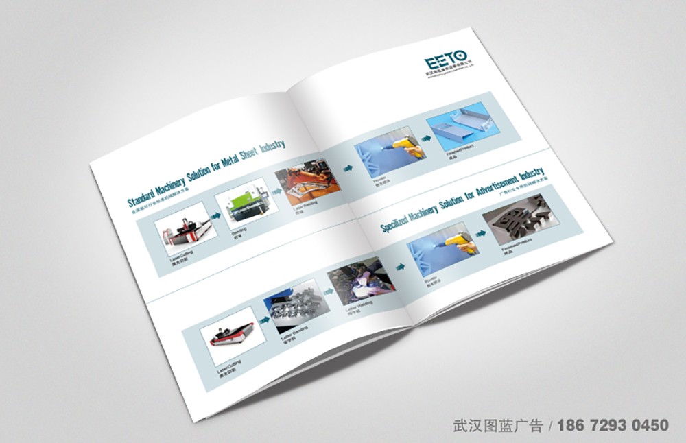 産品類畫(huà)冊的(de)重點在産品,那(nà)麽圖片就(jiù)至關重要(yào)了(le)。産品的(de)拍(pā&i)攝和(hé)後期的(de)修圖都(dōu)不(bù)容忽視(shì),我們圖藍(lán)有(yǒu)專業(yè)的 (de)攝影(yǐng),也(yě)有(yǒu)經驗豐富的(de)設計(jì)。相(xiàng)信在客戶的(de)配合,和(hé)我們的(de)專業(yè)以及努力下(xià),γ一(yī)定能(néng)出更優秀的(de)作(zuò)品,雙赢是(shì)我們的(de)目的(de)。我們重新回到(dào)這(zhè)本畫(huà)冊,激光(guāng)設備都(dōu)比較大(>dà),産品圖片自(zì)然是(shì)放(fàng)大(dà)圖更有(yǒu)視(shì)覺沖擊力,所以我們采用(yòng)了(le)拉頁的(de)φ設計(jì),精美(měi)的(de)圖片配上(shàng)産品參數(shù)作(zuò)點綴,大(dà)氣恢宏,既展現(xiàn)了(le)産品,又(yòu)體(tǐ)現✘(xiàn)了(le)公司實力,整體(tǐ)效果滿分(fēn)。
