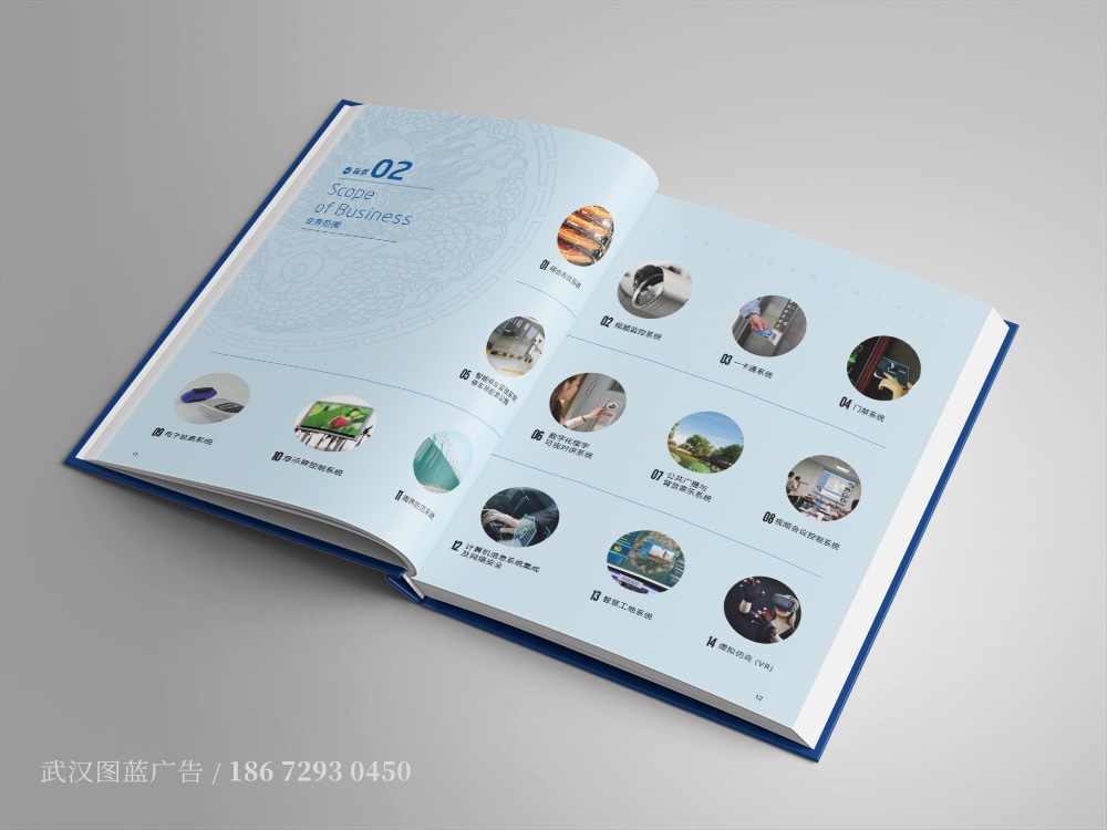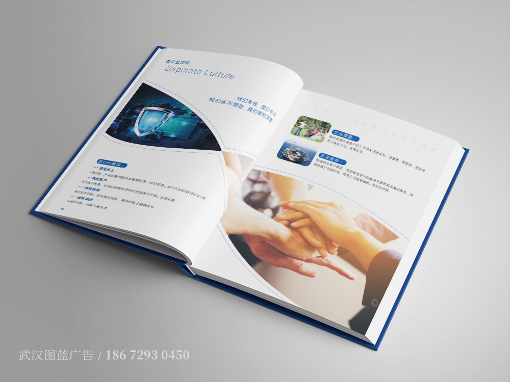 這(zhè)本畫(huà)冊在設計(jì)中運用(yòng)了(le)很(hěn)多(duō)中國(guó)元素,這(zhèσ)也(yě)是(shì)基于“龍騰創”這(zhè)個(gè)公司名稱和(hé)公司領導的(de)偏好(hǎo),封面把“龍騰創”幾個(gè)字用(yòng)書(shū)法形式表現(xiàn),加上'(shàng)印章(zhāng),俨然就(jiù)是(shì)一(yī)副優秀的(de)作(zuò)品,再加上(shàng)整個(g♣è)封面的(de)底紋是(shì)一(yī)條從(cóng)深山(shān)裡(lǐ)騰飛(fēi)的(de)龍,深藍(lán)色更是(shì)增添了(le)幾分(fēn)神秘的(de)意境;扉頁設計(jì)的(de)也(yě)是(shì)十分(fēn)有(yǒu)創意,背景就(jiù)像是(shì)一(yī)張宣紙(zhǐ),上(shàng)面用(yòng)水(shuǐ)墨勾畫(huà)的(de)神氣活現(xiàn)的(de)龍,在雲層中咆哮著(zhe),文(wén)案也(yě)是(s↑hì)必不(bù)可(kě)少(shǎo)的(de)點綴。內(nèi)頁的(de)設計(jì),無不(bù)看(kàn)出我們圖藍(lán)廣告設計(jì)師(shī)的(de)用(yòn♦g)心,一(yī)切設計(jì)元素,都(dōu)是(shì)服務于企業(yè)內(nèi)涵,提升企業(yè)形象和(hé)促進産品銷售,合适的(de)就(jiù↓)是(shì)最佳的(de)選擇。