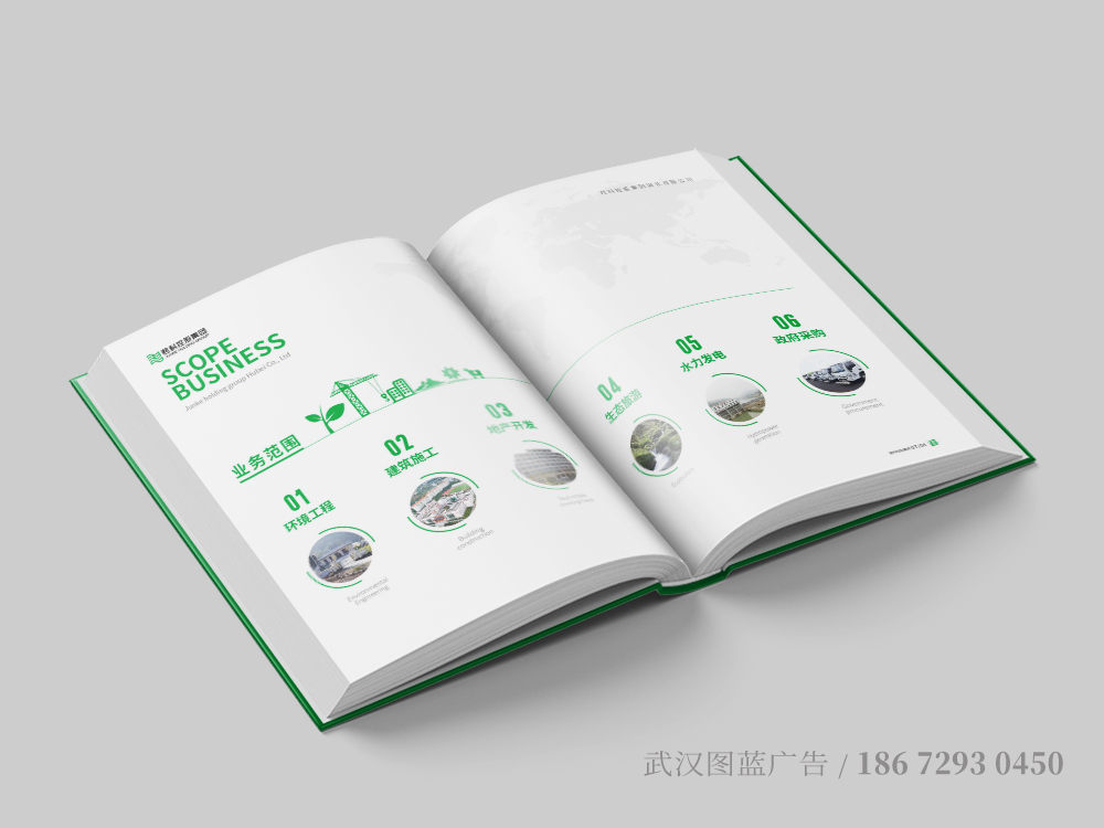 logo的(de)設計(jì),提取集團名稱中的(de)“君”為(wèi)元素,以公司的(de)主營業(yè)務“環境工(gōng)程”、“水(shuǐ)力發電(diàn)”為(wèi)側重點,采∞用(yòng)字體(tǐ)變形的(de)形式展示,配色隻用(yòng)單一(yī)綠(lǜ)色,即簡潔大(£dà)氣,又(yòu)清新富有(yǒu)朝氣。畫(huà)冊延續logo的(de)色調,設計(jì)風(fēng)格上(shàng)同樣簡潔大(dà)氣,內(nèi)容上(shàng)劃分(fēn)幾大(dà)闆塊,全面展示君科(kē)集團的(d<e)形象、業(yè)務及綜合實力。