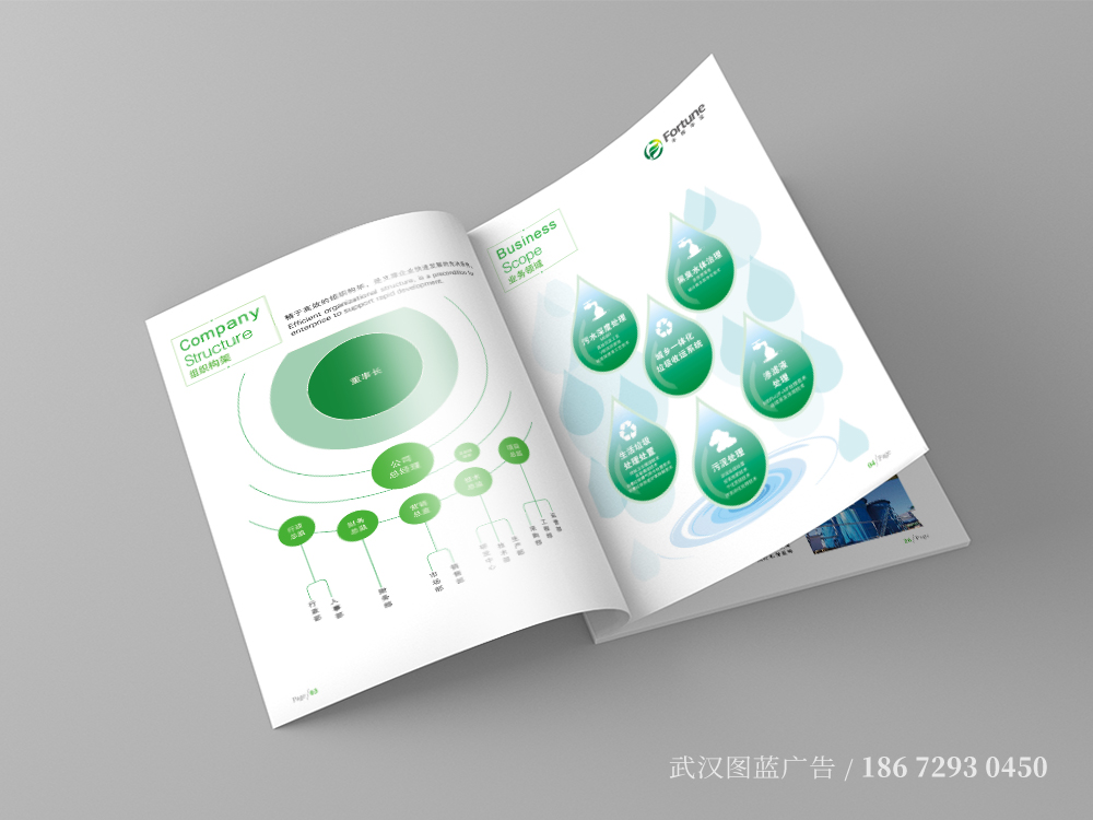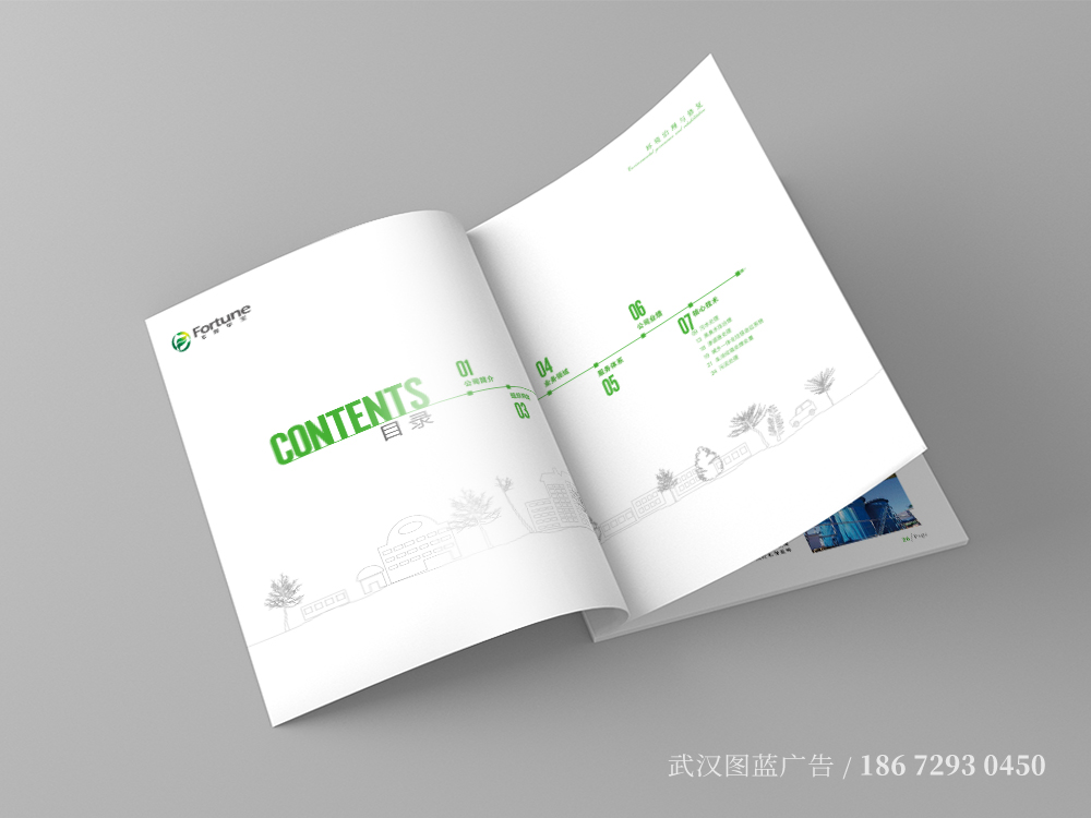 畫(huà)冊設計(jì)根據公司LOGO以綠(lǜ)色為(wèi)基調,英文(wén)名“Fortune”是(shì)财富、運氣,既強調了(le)環保即财富又(yòu)雙關了(le)公→司能(néng)聚集财富。