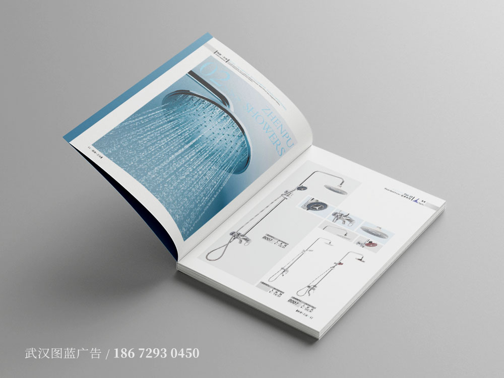 圖藍(lán)廣告設計(jì)師(shī)認為(wèi)産品畫(huà)冊最主要(yào)的(de)就(jiù)是(shì)産品,那(nà)麽怎樣去(qù)體(tǐ)現(xiànδ)産品呢(ne),其實費(fèi)再多(duō)的(de)口舌去(qù)描述,都(dōu)不(bù)如(rú)一(yī)張圖片表現(xiàn)的(de)更有(yǒu)力。所以,畫( huà)冊設計(jì)的(de)時(shí)候圖片不(bù)但(dàn)要(yào)精美(měi)還(hái)要(yào)真實,盡量不(bù)要(yào)去(qù)網上(shàng)随意下×(xià)載素材就(jiù)使用(yòng),最好(hǎo)是(shì)由企業(yè)來(lái)提供真實産品圖片或著(zh←e)由我們來(lái)專業(yè)拍(pāi)攝。振普衛浴這(zhè)本畫(huà)冊的(de)圖片多(duō)數(shù)是(s'hì)交由我們圖藍(lán)拍(pāi)攝,經設計(jì)師(shī)精心修圖、做(zuò)圖,一(yī)本完美(mě®i)的(de)畫(huà)冊離(lí)不(bù)開(kāi)設計(jì)師(shī)的(de)辛勤付出,®當然也(yě)需要(yào)客戶的(de)信任和(hé)支持!