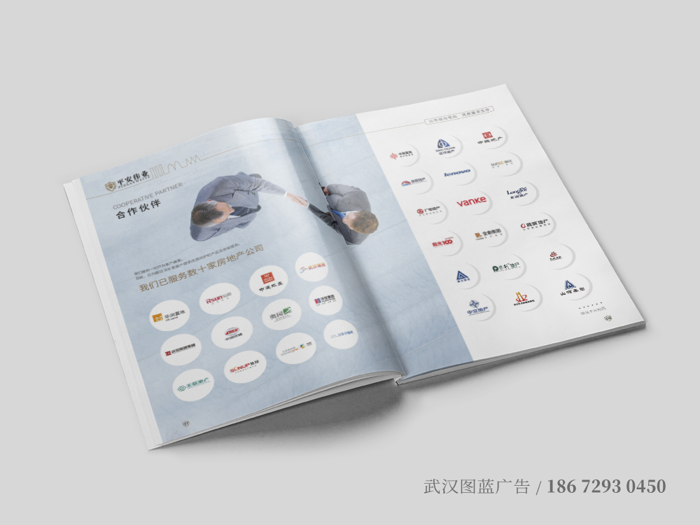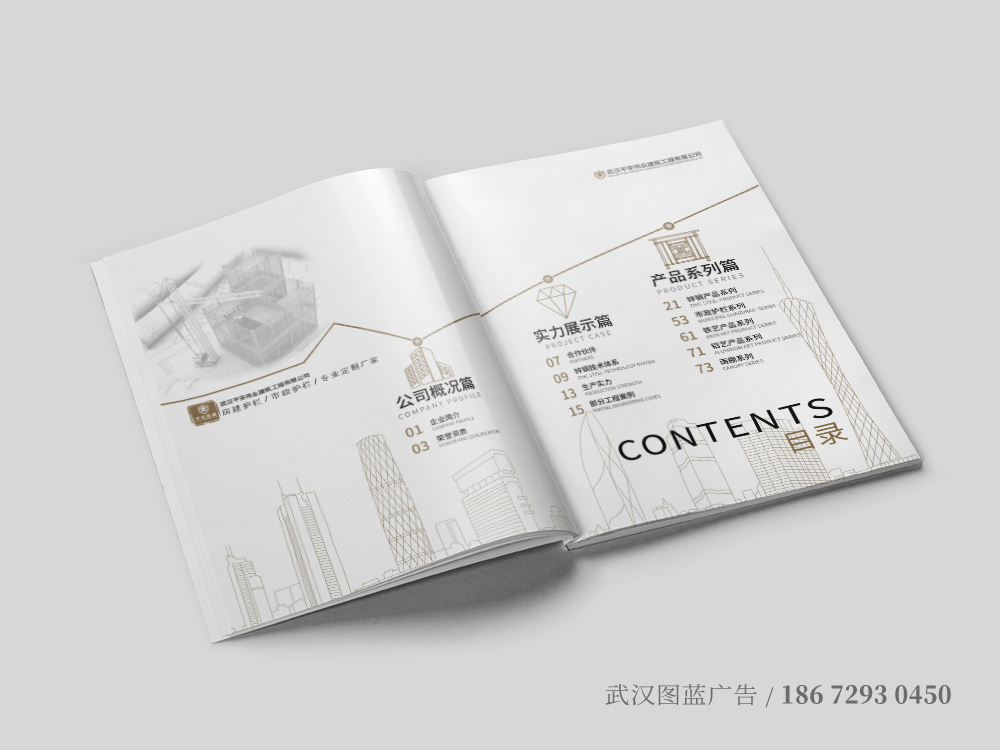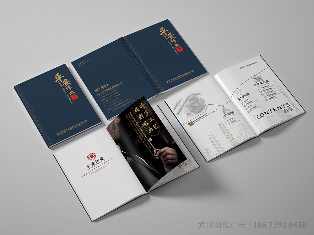 畫(huà)冊封面以藍(lán)色為(wèi)底色,以公司簡稱“平安偉業(yè)”和(hé)主營業(yè)務為(wèi)設計→(jì)元素,以藍(lán)色底色體(tǐ)現(xiàn)沉穩可(kě)靠,符合建築行(xíng)業(yè)給人(rén)的(de)穩定感。封面右上(shàng)主為(wèi₩)公司簡稱“平安偉業(yè)“和(hé)主營業(yè)務,在畫(huà)冊印刷制(zhì)作(zuò)後期彩用(yòng)燙金(jīn)工(gōng)藝處理 (lǐ),不(bù)僅突出公司簡稱能(néng)快(kuài)速傳達品牌,而且高(gāo)檔大(dà)氣。下(xià)方全稱增強正式感,左邊全拼字母增加設計(jì)∏感和(hé)國(guó)際化(huà)氛圍。畫(huà)冊的(de)內(nèi)頁設計(jì)以公司介紹、企業(yè)資質證書♦(shū)、主營産品和(hé)建築項目圖片,以簡潔文(wén)字說(shuō)明(míng)突出公司實力和(hé)專業(yè)水(shuǐ)平,整體(tǐ)圍繞公司簡稱、全稱、全拼字母ε和(hé)主營業(yè)務進行(xíng)設計(jì),通(tōng)過一(yī)本畫(huà)冊充分(fēn)展示了(le)“平安偉業(yè)公司”的(de)實力與行(xíng)業(yè)地(dì)位。
